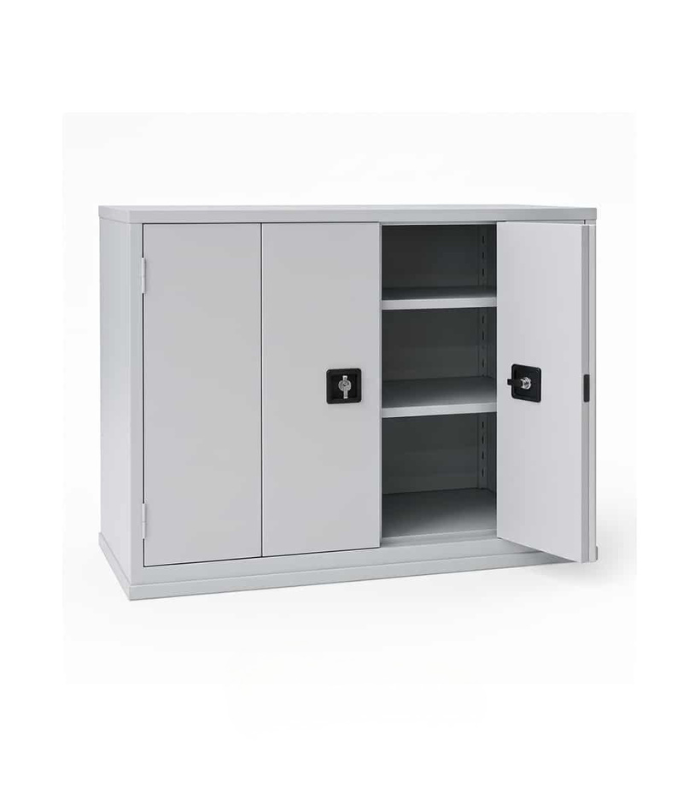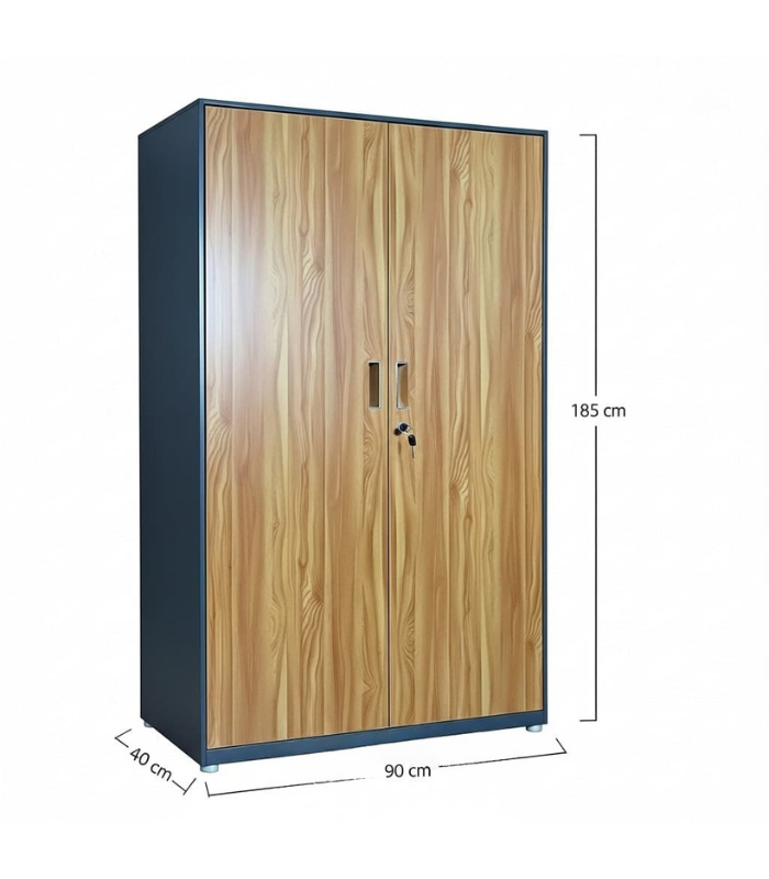 Avec ses dimensions de 90 cm de largeur, 185 cm de hauteur et 40 cm de profondeur, elle offre une capacité de rangement optimisée pour les dossiers suspendus, documents A4, fournitures et équipements professionnels. Les portes battantes sont équipées d’un système de verrouillage centralisé avec serrure à clé, garantissant la sécurité des contenus sensibles.