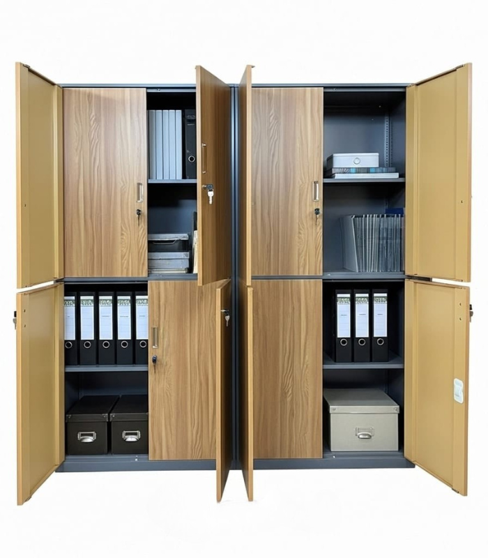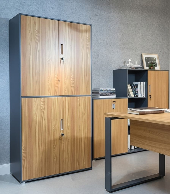 Optimisez l’organisation de vos espaces professionnels avec l’armoire HX-W0602ZY, une solution de rangement à la fois robuste et esthétique. Sa structure en métal thermolaqué garantit une excellente résistance à l’usage intensif, tandis que ses portes finition bois apportent une touche chaleureuse et contemporaine à votre environnement de travail.