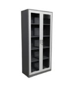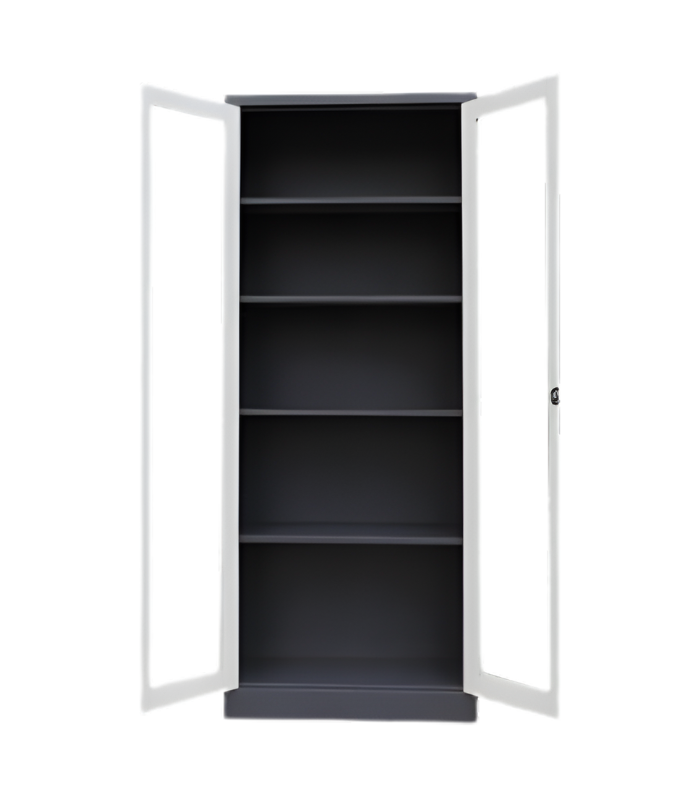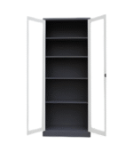 Cette armoire de rangement vitrée en métal est conçue pour les espaces professionnels exigeants : bureaux, laboratoires, établissements médicaux ou zones de stockage. Son design sobre et moderne, avec une structure gris foncé et un encadrement gris clair autour des portes vitrées, s’intègre facilement dans tout environnement fonctionnel.