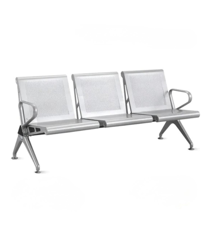 Cette banquette 2 places combine élégance contemporaine, confort d’accueil et robustesse professionnelle. Sa finition argentée et ses assises en cuir noir matelassé en font une pièce idéale pour les environnements où l’image, la durabilité et la facilité d’entretien sont essentielles.