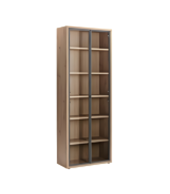 - Coloris : structure bois clair, encadrement des portes foncé, vitres transparentes