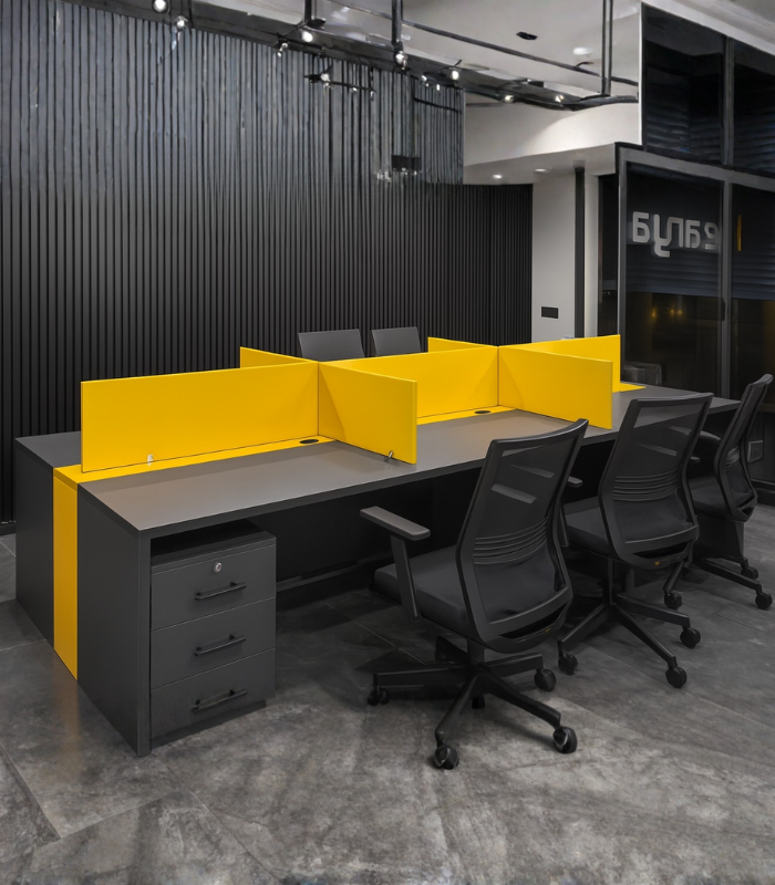 🧠 Conseil d’aménagement : Disposez les deux rangées en parallèle pour une circulation fluide et une communication naturelle. Intégrez des plantes vertes et des éléments décoratifs pour créer une ambiance inspirante. Ce modèle est idéal pour les agences créatives, les startups ou les services administratifs. Pensez à harmoniser les accessoires (lampes, porte-documents, tapis) avec les tons bois et gris pour une cohérence visuelle professionnelle.