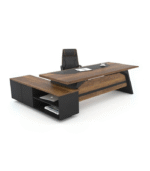 Suggestion d’aménagement : Associe-le à un fauteuil direction haut dossier en cuir noir, ajoute une lampe de bureau à bras articulé et quelques éléments décoratifs (plante, cadre, porte-documents). Le retour peut aussi servir de séparation visuelle ou de support pour objets personnels.