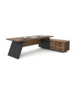 Ce bureau en L est conçu pour les environnements professionnels où l’image et l’efficacité doivent coexister. Le plateau principal en bois clair est agrémenté d’un sous-main noir intégré, offrant une zone d’écriture confortable et structurée. La structure noire apporte du contraste et de la stabilité, tandis que le retour latéral propose des niches ouvertes pour poser un ordinateur portable, des documents ou des objets décoratifs. L’ensemble crée une ambiance contemporaine, sobre et hautement professionnelle.