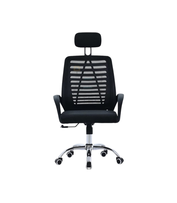 Cette chaise de bureau moderne allie design ergonomique et matériaux respirants pour un confort optimal. Son dossier en maille noire, orné d’un motif géométrique, offre un excellent soutien lombaire tout en favorisant la ventilation. L’assise rembourrée, l’appui-tête réglable et les accoudoirs fixes assurent une posture saine et agréable. La base chromée à cinq roulettes garantit une mobilité fluide et une stabilité renforcée. Parfaite pour les espaces de travail professionnels ou à domicile.