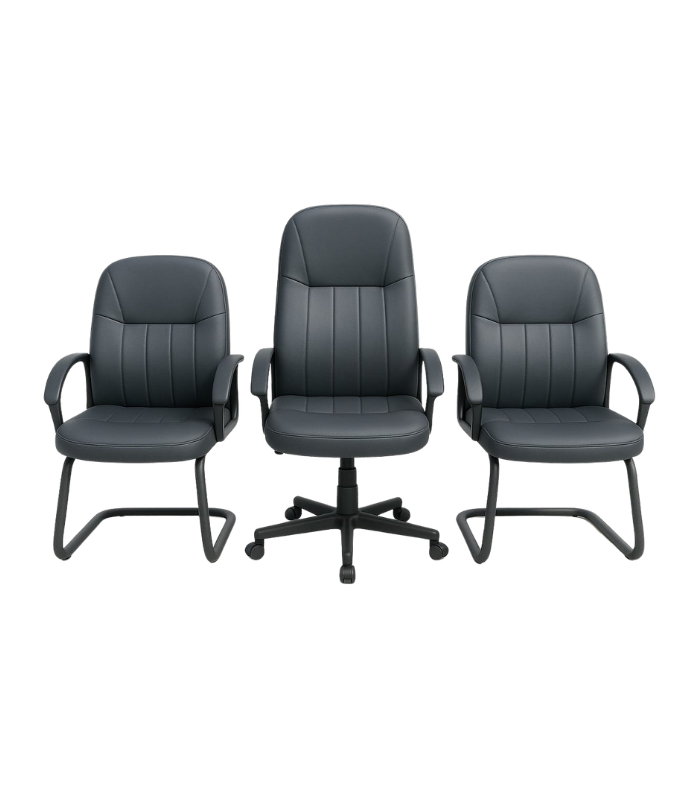 Ensemble de 3 chaises de bureau assorties – fauteuil direction + 2 chaises visiteur design noir