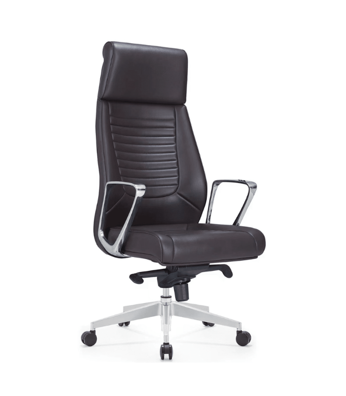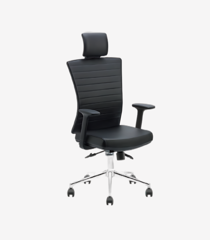 Ce fauteuil ergonomique au design contemporain est conçu pour offrir un confort optimal dans les environnements professionnels ou à domicile. Il dispose d’un dossier haut avec surpiqûres horizontales, d’un appui-tête intégré et d’une assise généreusement rembourrée. Les accoudoirs réglables permettent d’adapter la posture selon les besoins. Le piètement chromé à cinq branches est équipé de roulettes pour une mobilité fluide et une excellente stabilité.