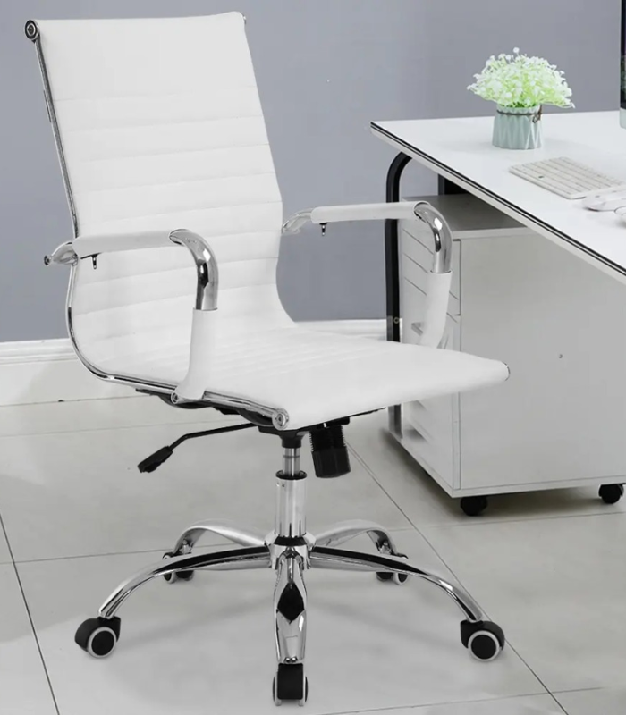 Fauteuil de Bureau Design Blanc – Confort & Élégance Chromée