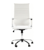 Transformez votre bureau en un espace raffiné et fonctionnel grâce à ce fauteuil de bureau contemporain. Son dossier haut avec surpiqûres horizontales offre un excellent soutien lombaire, tandis que son revêtement blanc apporte luminosité et style. Les accoudoirs et la base en chrome ajoutent une touche sophistiquée, idéale pour un bureau professionnel ou un home office.