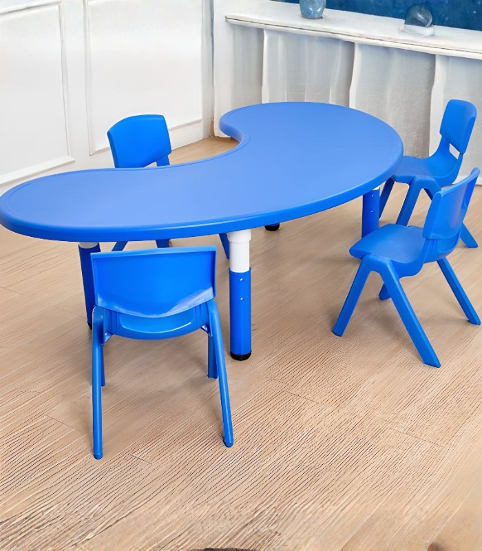 Astuce d’aménagement : Associe-la à des chaises ColorPlay assorties pour créer un espace enfant harmonieux et stimulant. La forme haricot permet à un adulte de s’installer au centre pour encadrer l’activité.