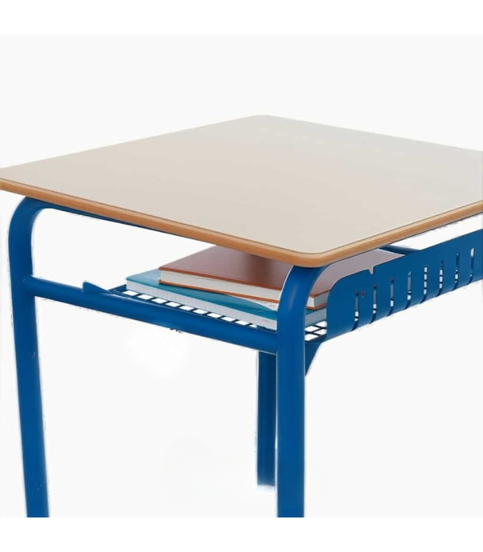 La table scolaire ClassLine est conçue pour offrir aux élèves un espace de travail confortable, stable et durable. Son plateau rectangulaire en bois clair, aux bords arrondis, permet une utilisation sécurisée et agréable. La structure métallique bleue assure une excellente stabilité, tandis que le panneau frontal ajouré renforce la rigidité tout en apportant une touche graphique.