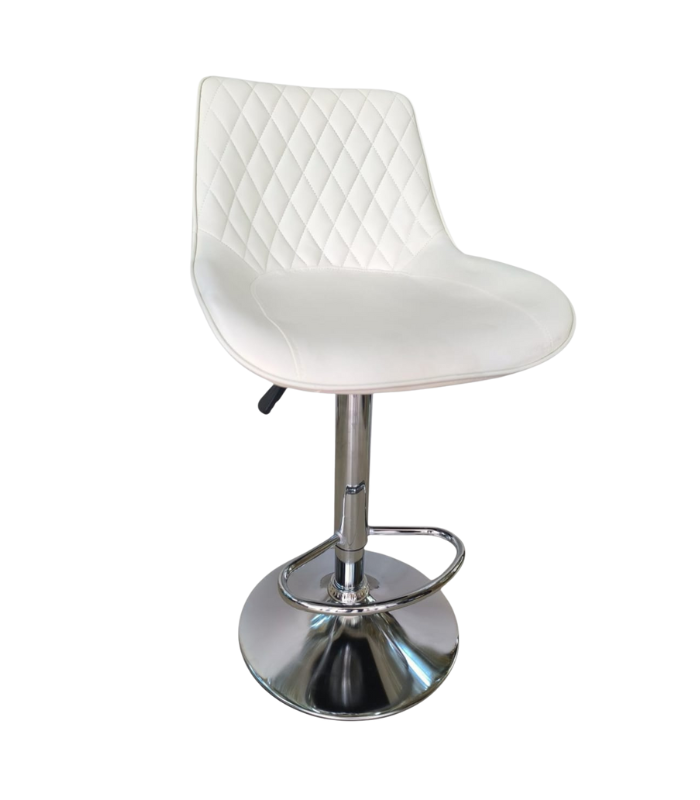 Ce tabouret de bar allie élégance contemporaine et confort ergonomique. Son revêtement en simili cuir blanc, rehaussé par un motif capitonné en losanges sur le dossier, apporte une finition raffinée à votre cuisine, bar ou espace d’accueil. Grâce à son pied chromé et sa hauteur réglable, il s’adapte à tous les comptoirs avec style et praticité.